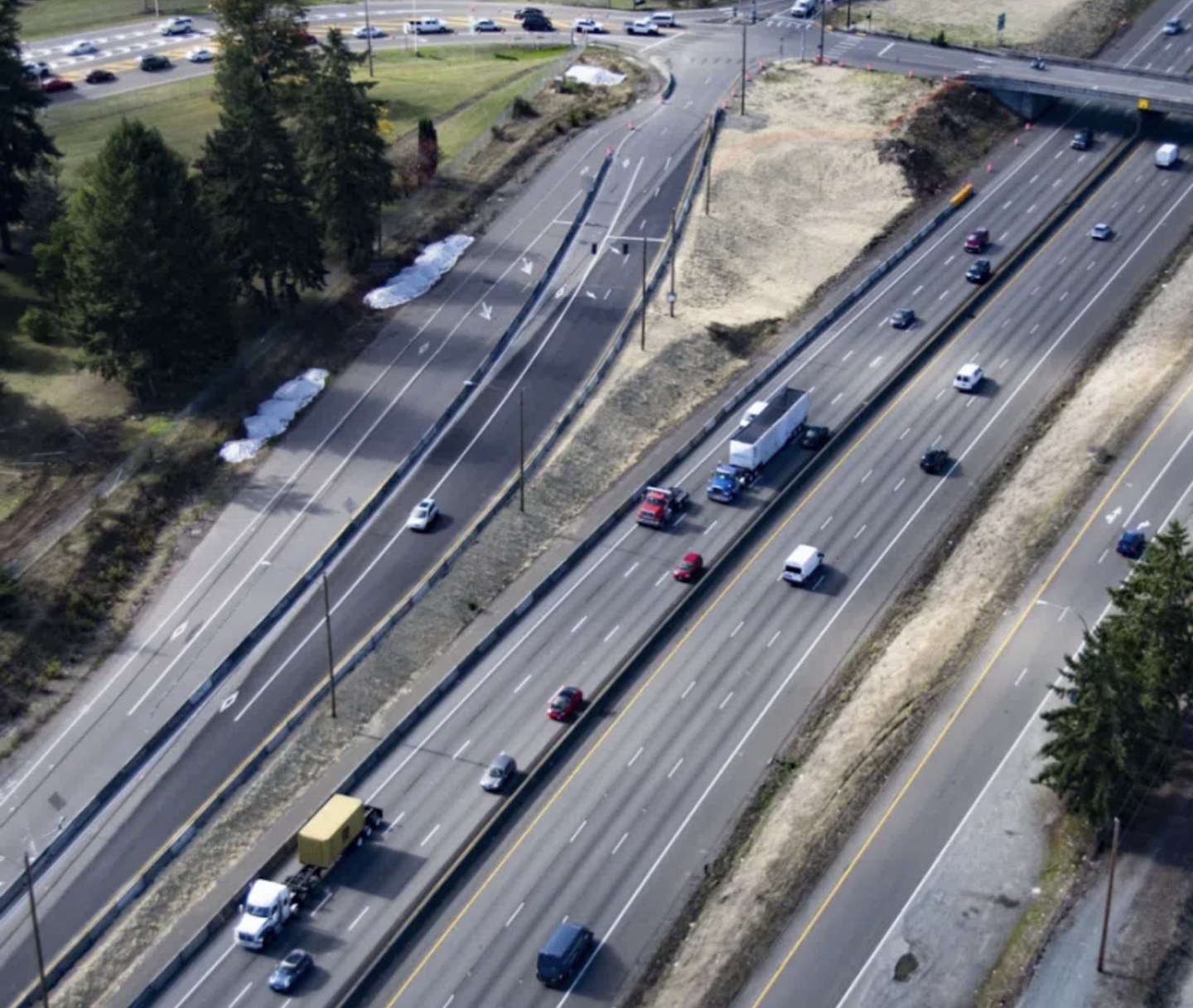 The expansion required maintaining transportation flow while constructing new HOV lanes, a replacement bridge, a roundabout, and improved access points to Joint Base Lewis-McChord (JBLM).
